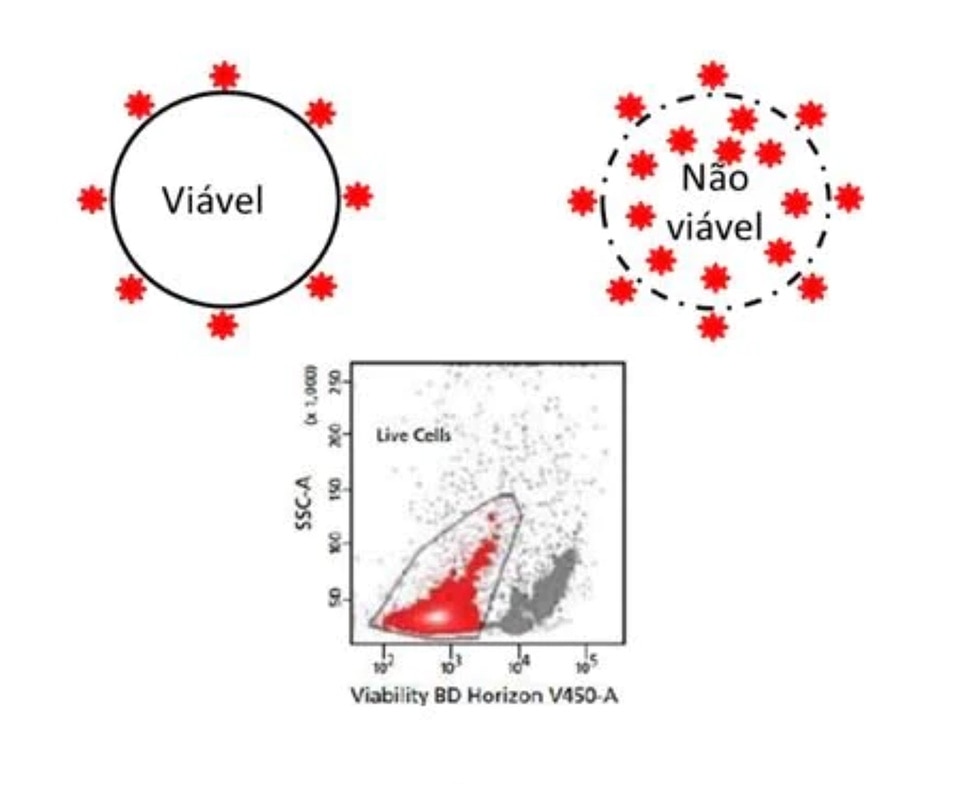 Enquanto gates baseados em forward e side scatter auxiliam na exclusão de debris e células mortas, essa estratégia não irá eliminá-las por completo da análise. A inclusão, no painel multicolor, de um marcador de viabilidade celular tem se estabelecido como prática comum em Citometria de Fluxo para comprovar a acurácia dos resultados.