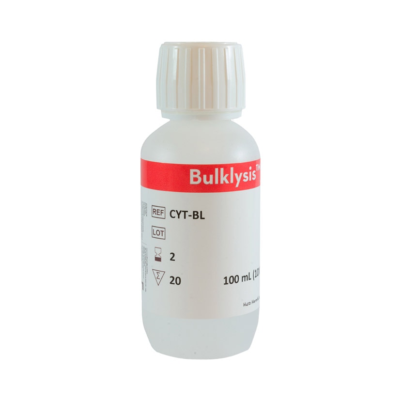 Bulklysis™ is a hypotonic lysing solution which provides osmotic lysis of the erythrocytes before immunofluorescence staining of peripheral blood or bone marrow aspirate specimens which are subject to be evaluated in a flow cytometric assay. It it is used as an accessory to IVD procedures in flow cytometric assays.
