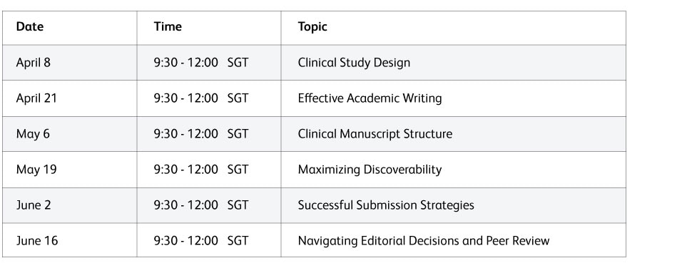In these workshops, a trainer from Nature Portfolio will speak about various topics related to academic writing, Clinical Study Design, and Navigating Peer Review and Monitoring Impact.
