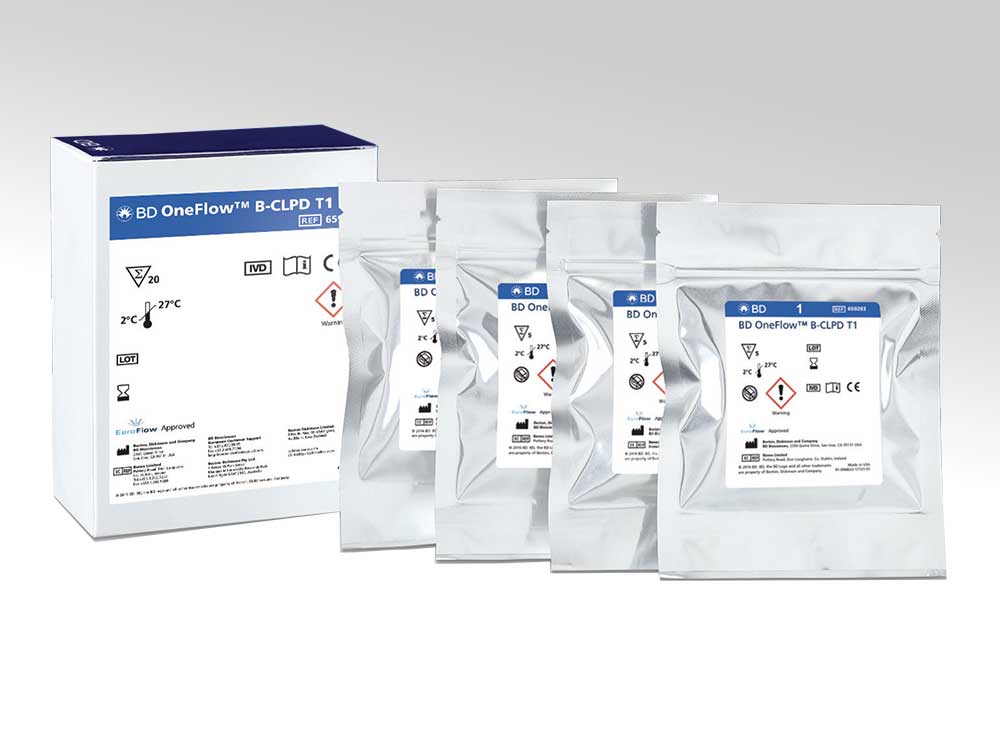 BD OneFlow™ B-CLPD T1は、革新的なBD OneFlow™ ソリューションの一つであり、フローサイトメーターを再現性よくセットアップし、正常細胞集団と異常細胞集団の免疫表現型解析のために検体を染色、測定、分析するための試薬、セットアップビーズ、プロトコール、およびアッセイテンプレートが一式セットになっています。造血器腫瘍の特性評価に関するEuroFlow™ コンソーシアムの研究と検証作業に基づいて構築されています。1*